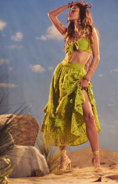 Rococo Sand’s vibrant, bold, edgy style stands out in any crowd. It is inspired by exotic vacations and effortless style. The brand emanates beautiful prints, detailed embroidery, and splendid colorful fabrics.