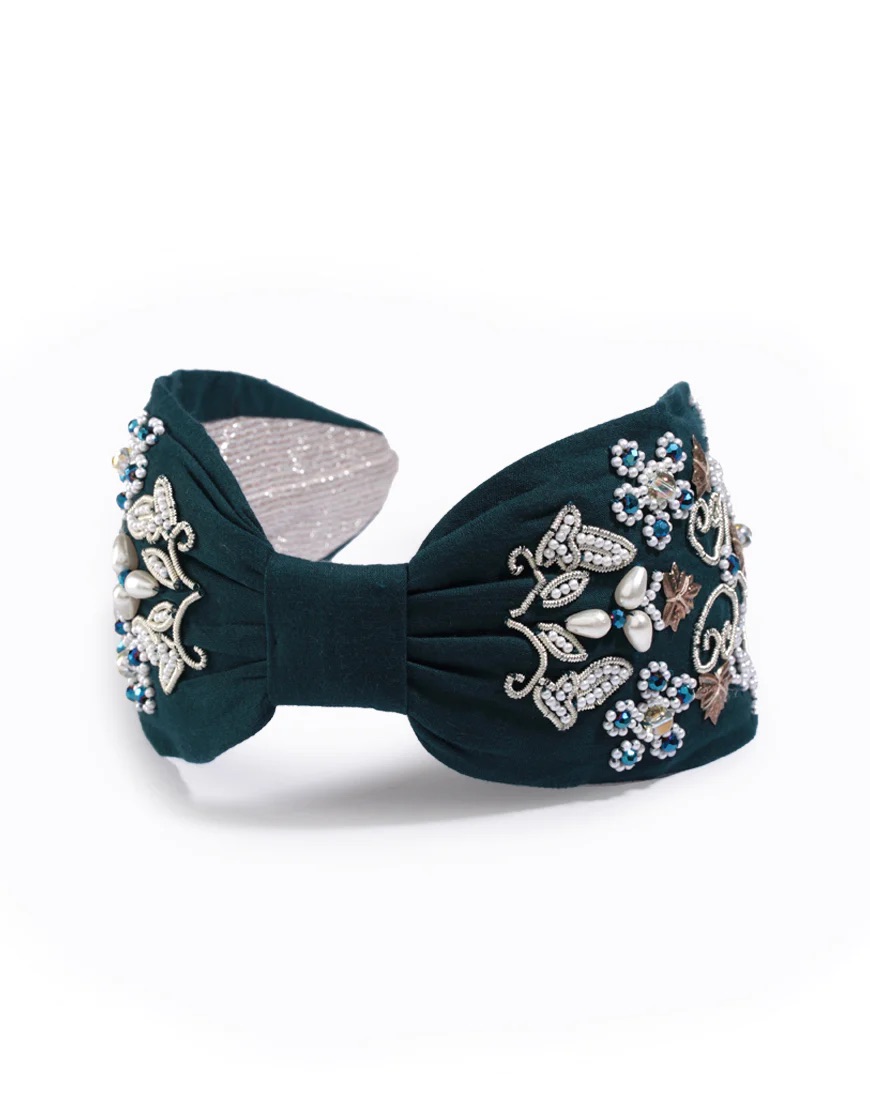 Our headbands are made by Namjosh. Namjosh is an accessories brand that marries artisanal hand embroidery techniques with a contemporary aesthetic. The brand offers beautiful unique designs individually handcrafted. Their design studio and production facility, located in India, serves as a creative platform for the many artisans who create these beautiful pieces.